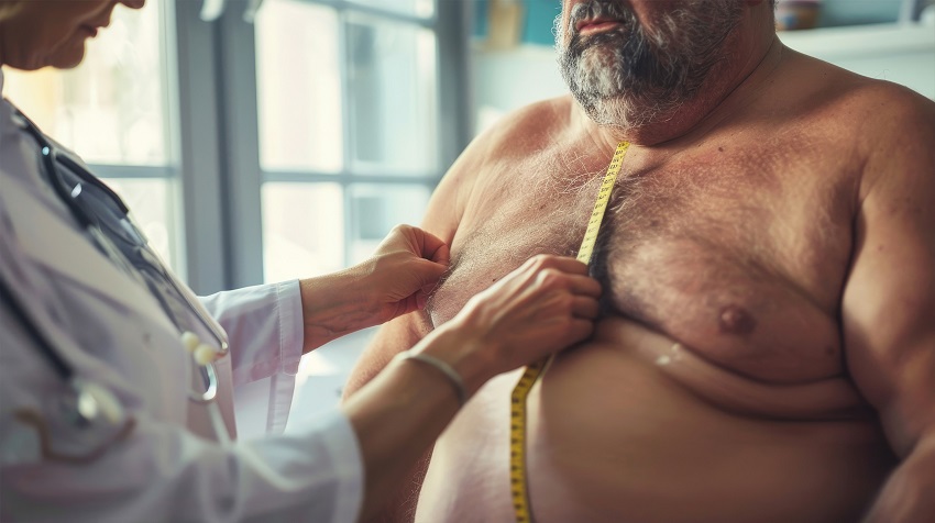 Esto puede asociarse con la verdadera ginecomastia. Los hombres clasificados como individuos con un alto porcentaje de grasa corporal pueden desarrollar o exacerbar el riesgo de ginecomastia debido al envejecimiento, la resistencia a la insulina y un estilo de vida sedentario. La reducción en la grasa corporal total se puede lograr a través de una reducción de peso supervisada médicamente y puede ayudar a mejorar el contorno del pecho.